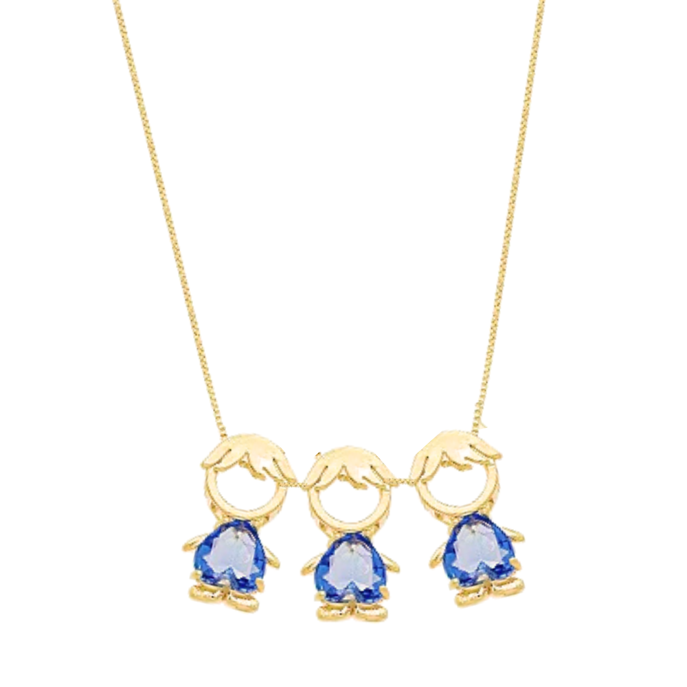 Colar com Filhos tres meninos com cristal azul banhado ouro Dourado