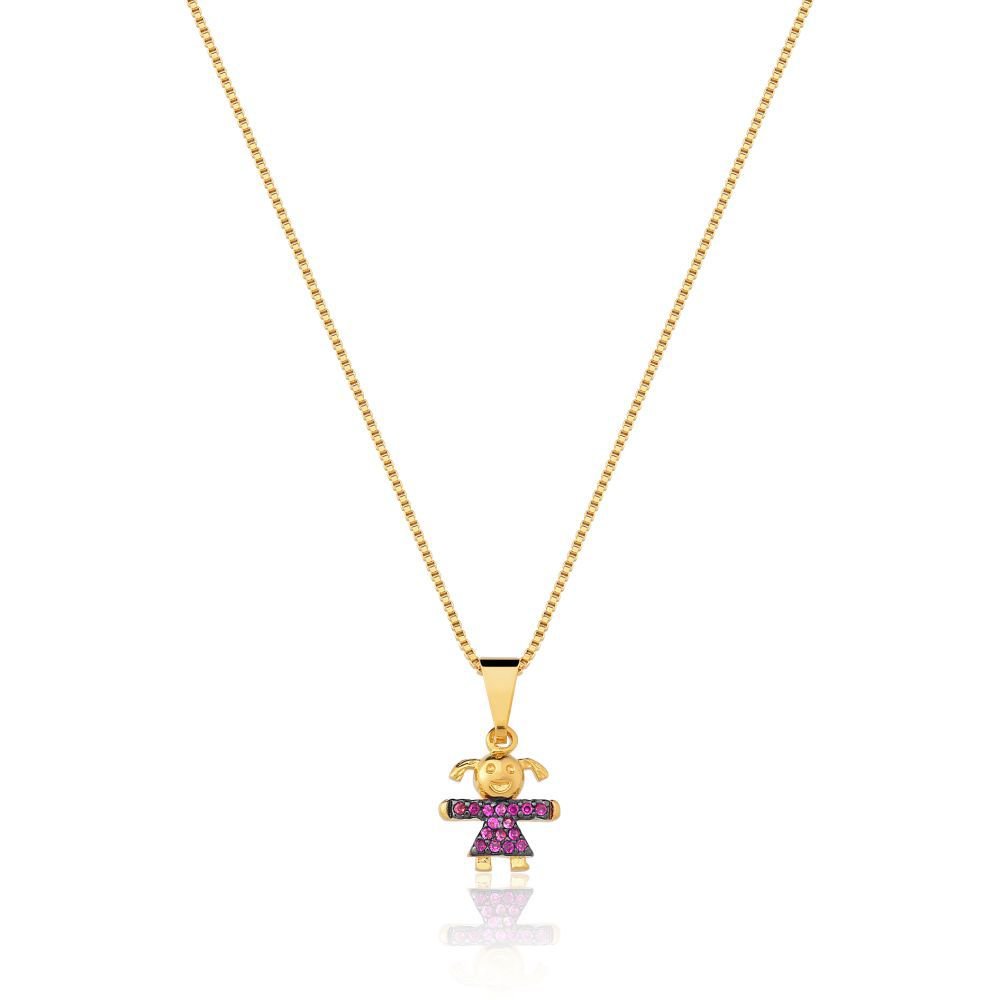 Colar Com Pingente de filha Menina Com Zirconias cor rubi banhado em ouro 18k cordao mae filhos Dourado