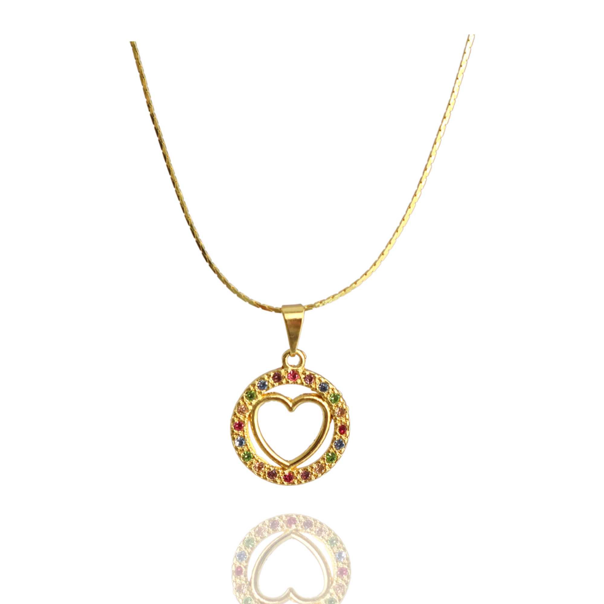 COLAR CORAÇÃO CRAVEJADO COLORIDO VAZADO Dourado