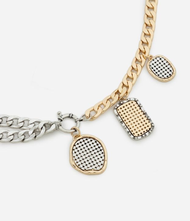 Colar Curto com Corrente Assimétrica e Pingentes de Medalha