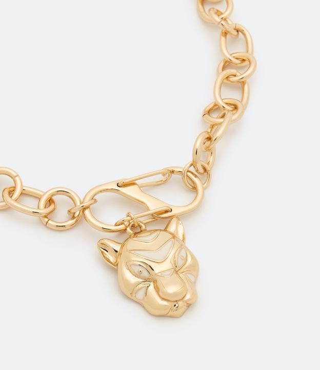 Colar Curto com Corrente Larga e Pingente de Tigre