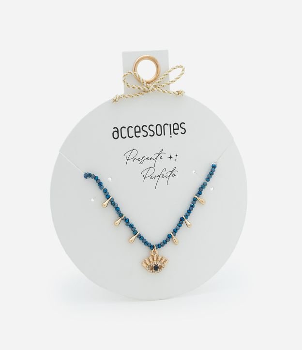Colar Curto com Mini Cristais Artificiais Lapidados e Pingentes Gota e Olho Grego Azul/Dourado