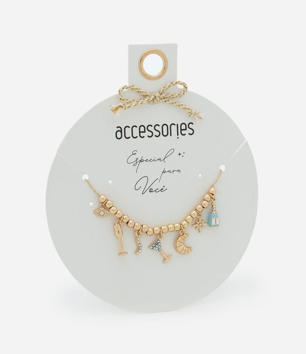 Colar curto com pingentes de drinks e comemorações, com suporte para presente.