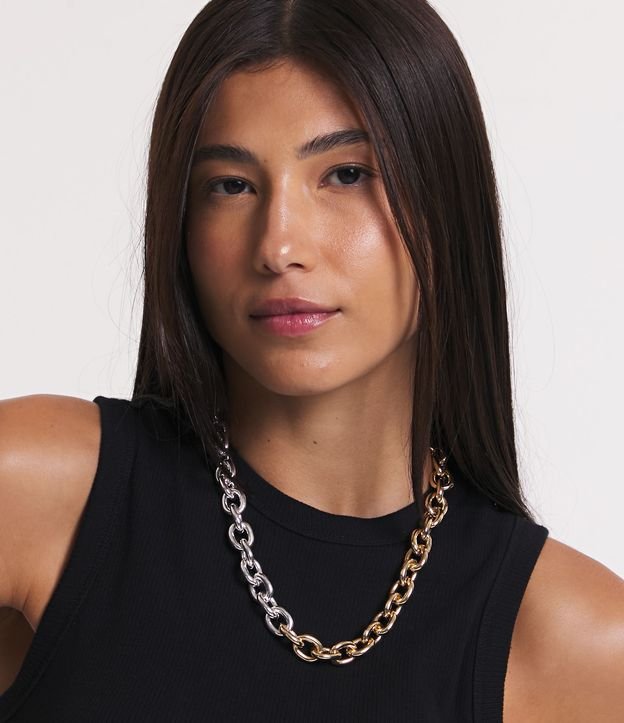 Colar Curto em Metal com Corrente e Elos em Colorações Dividas