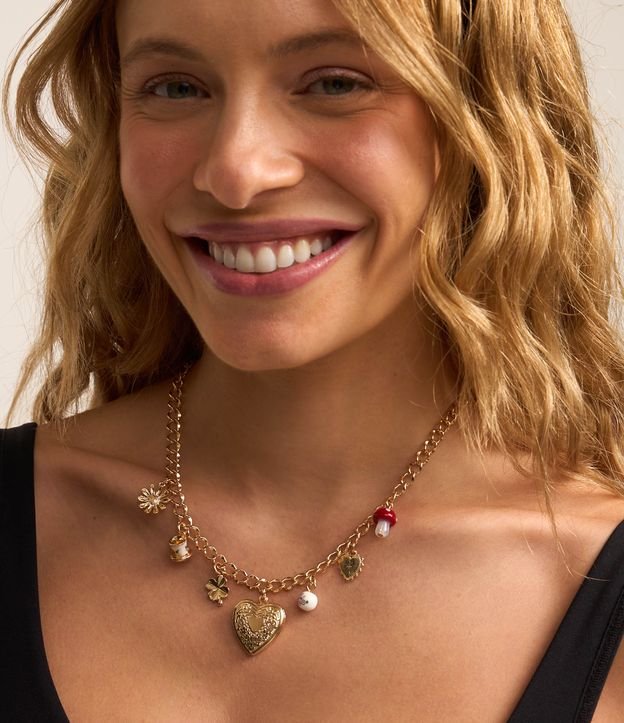 Colar Curto Pérola com Multi Pingentes Amor e Sorte