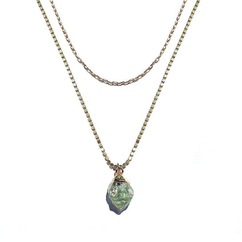 Colar Duplo Cristal Bruto Quartzo Verde Semijoia