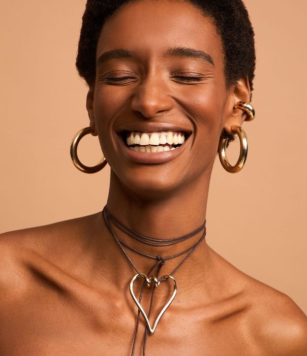 Colar em Fio Encerado com Ponteiras e Pingente de Coração