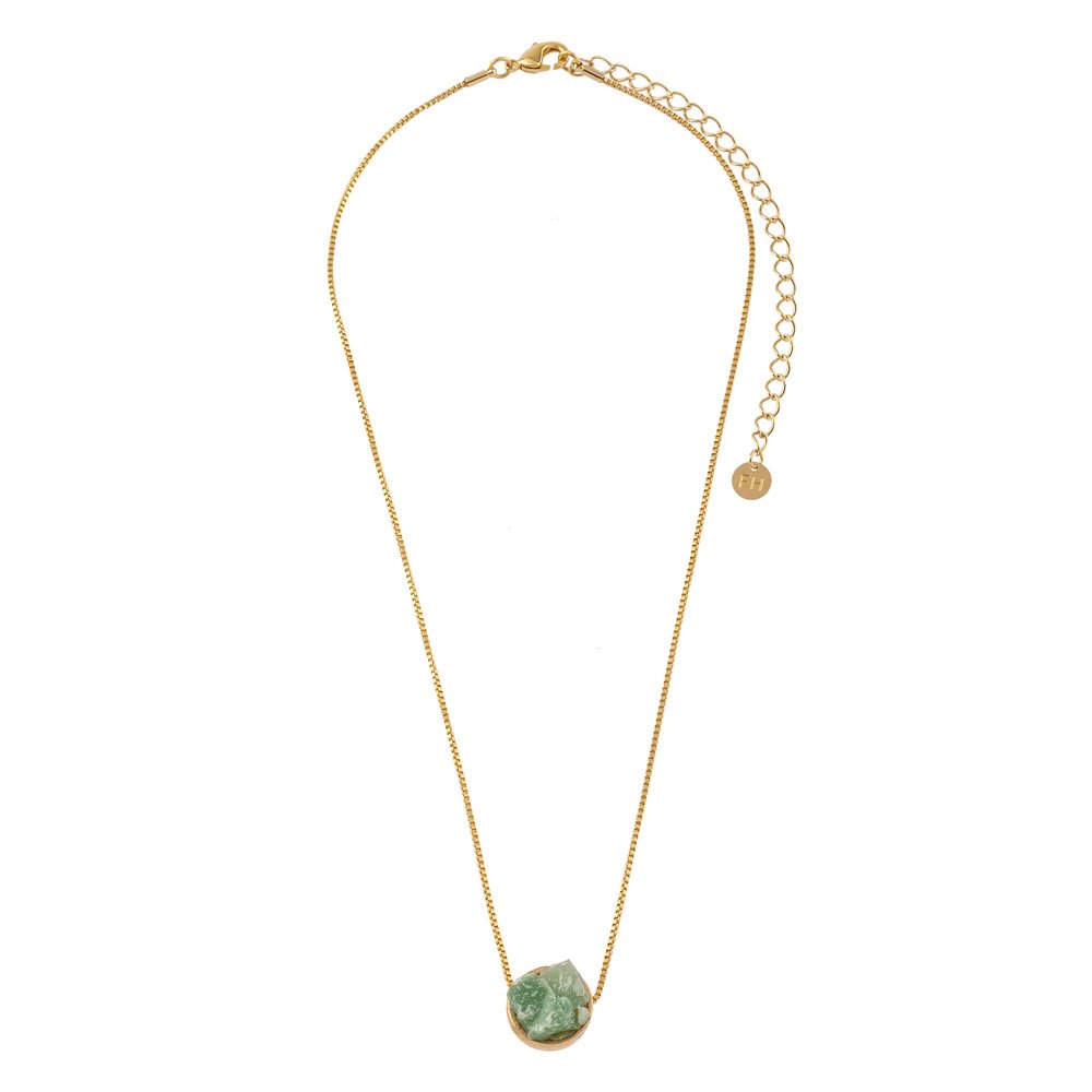 Colar Feminino Mini Round Quartzo Verde Calm Dourado