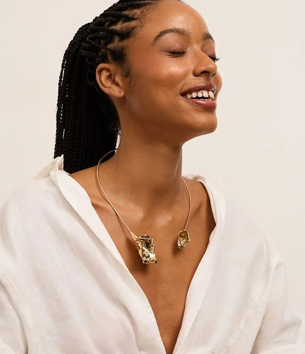 As bijuterias em forma de colar são acessórios versáteis que complementam diferentes estilos e ocasiões, oferecendo charme e personalidade ao visual. Elas variam desde os modelos curtos, como chokers e gargantilhas, que trazem um toque moderno e ousado ao pescoço, até os colares longos, ideais para looks mais elegantes ou despojados, podendo ser usados sozinhos ou combinados com outras peças. A gravatinha, com seu design delicado e alongado, adiciona sofisticação e feminilidade, sendo perfeita para composições mais refinadas. Já os colares em camadas, compostos por múltiplas correntes de diferentes comprimentos, criam um efeito visual dinâmico e estiloso, permitindo misturar texturas, pingentes e estilos. Com uma ampla variedade de materiais, cores e designs, as bijuterias, exclusivas das Lojas Renner, em forma de colar são uma forma acessível e criativa de expressar a identidade pessoal.