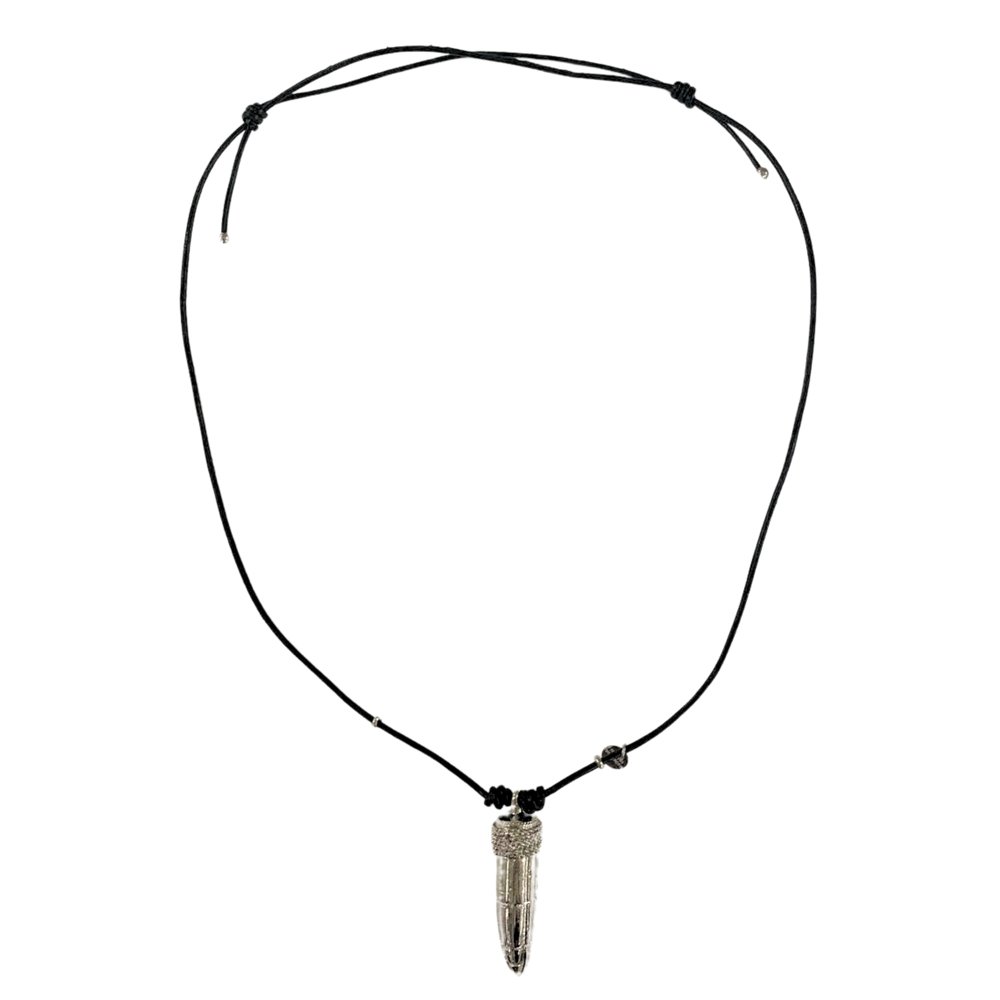 Colar Masculino Echos Of Time Noir confeccionado em fio de couro sintético de alta qualidade, o colar oferece resistência e flexibilidade, proporcionando um ajuste confortável ao pescoço. Sua tonalidade escura cria um contraste perfeito com o brilho metálico do pingente, tornando a peça ainda mais imponente. O destaque do colar é o impressionante pingente, em metal prateado com acabamento detalhado. O colar possui um fecho em nó deslizante, permitindo ajuste fácil e personalizado ao tamanho desejado. Esse sistema confere praticidade e versatilidade, tornando-o ideal para diferentes estilos e ocasiões. Acabamentos e metais em banho Bianco em sua composição.