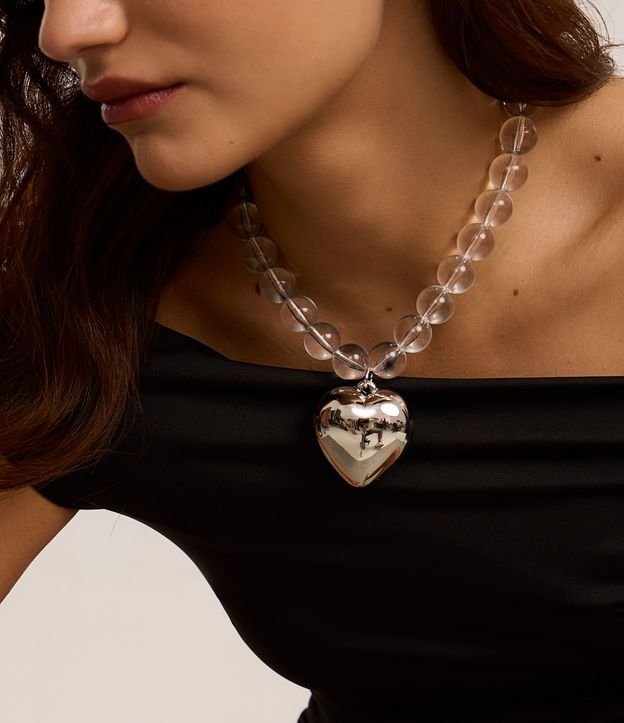 Colar Maxi com Esferas de Resina e Pingente de Coração