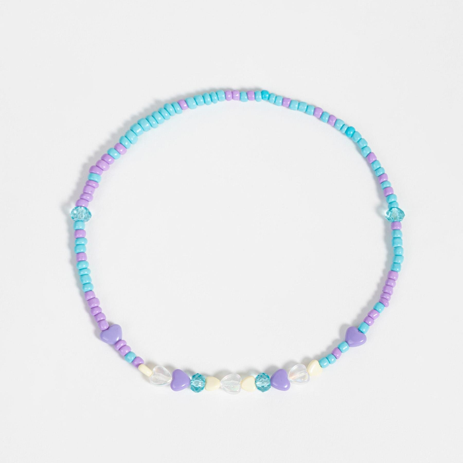 Colar Miçangas Lilás e Azul Coração
