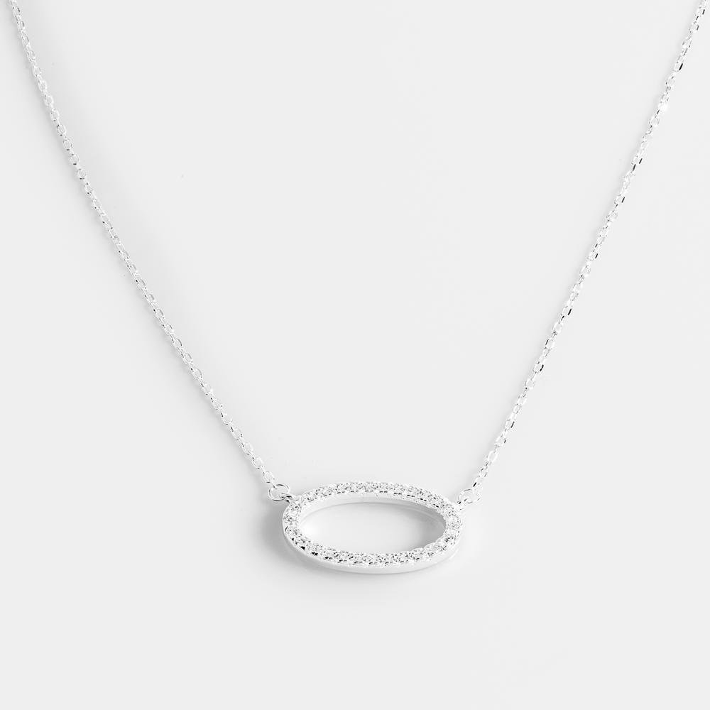 Colar Oval Cravejado em Zircônias Corrente Elinho 40cm Prata 925