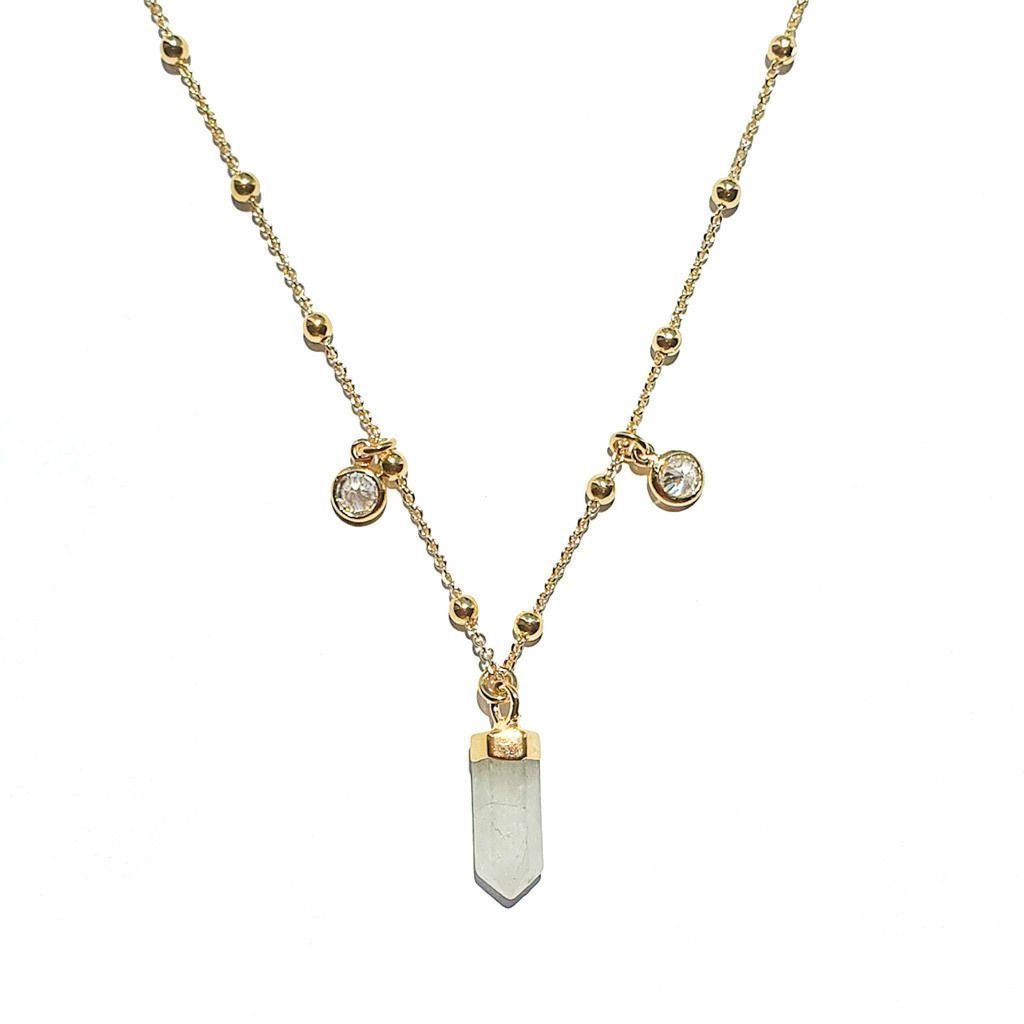 Colar Pingente Cristal Quartzo Branco Semijoia