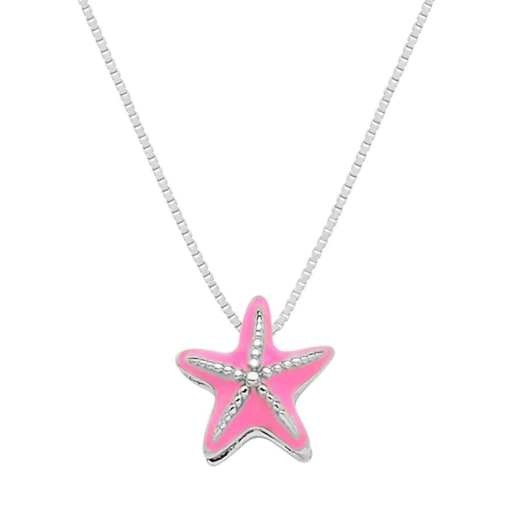 Colar em Prata Estrela do Mar com Resina Rosa 8.60x8.80mm 37cm