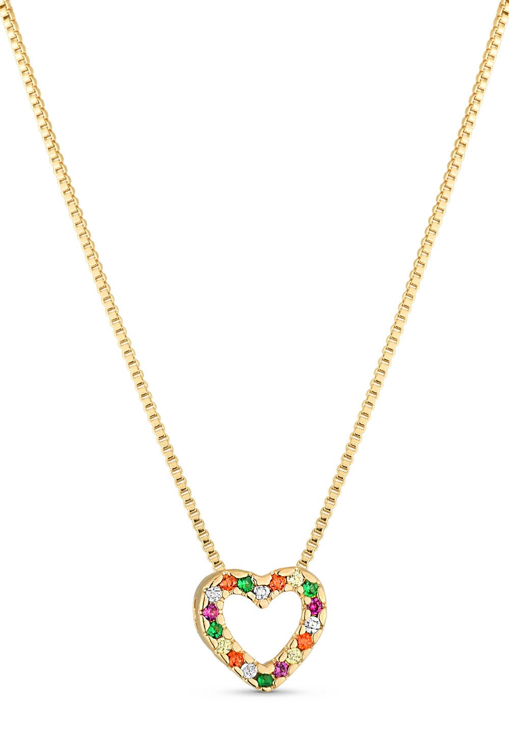Colar Semijoia Pingente Coração Com Zircônias Coloridas Dourado