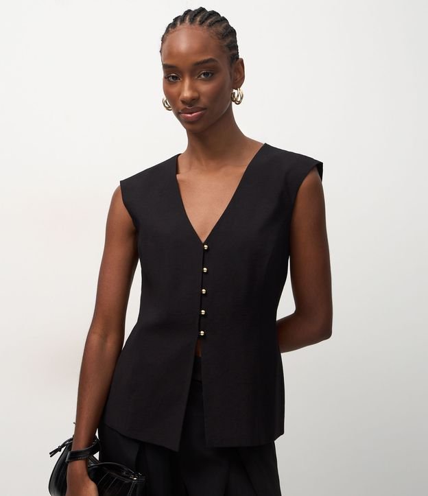 Colete Acinturado de Alfaiataria com Abotoamento Preto