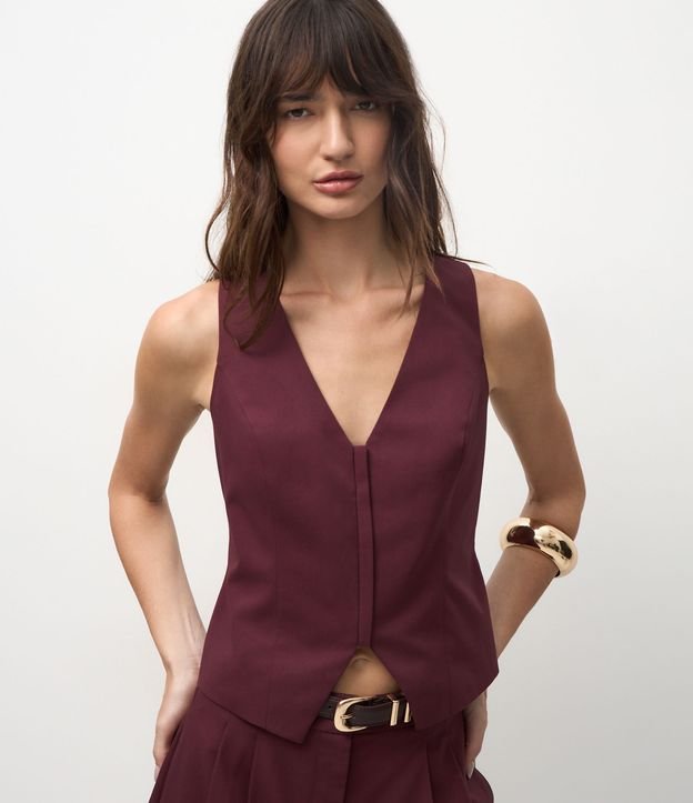Colete Ajustado de Alfaiataria com Fechamento em Zíper Vermelho