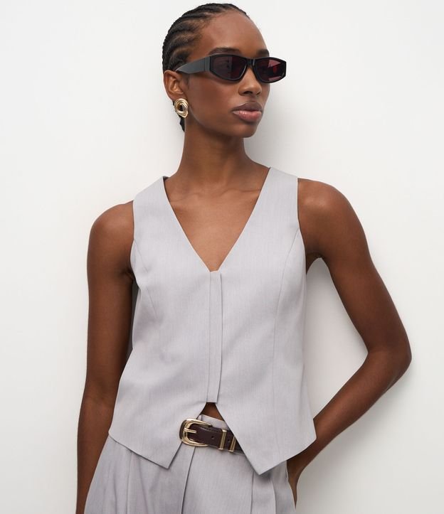 • Colete Ajustado de Alfaiataria com Fechamento em Zíper Cinza 3