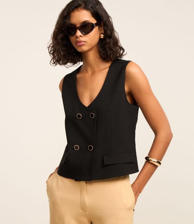 Colete Alfaiatado com Botões no Transpasse e Lapelas
