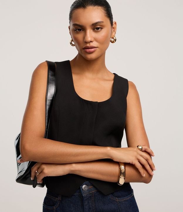 Colete Alfaiatado com Decote Quadrado e Bolsos Fake Preto