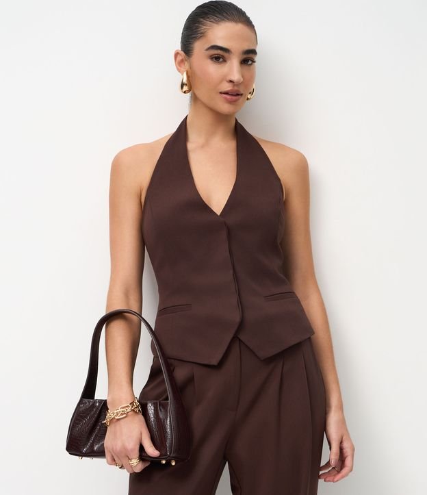 Colete Alfaiatado com Frente Única Marrom