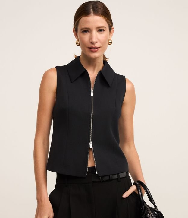 Colete Alfaiatado com Gola Pólo e Fechamento em Zíper Preto