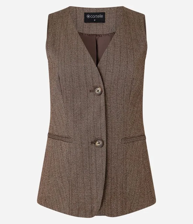 Colete Alfaiatado com Padronagem Espinha de Peixe Marrom