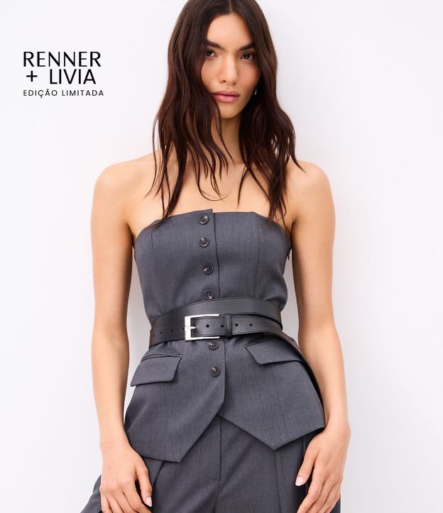 Colete Alfaiatado Sem Alça com Botões e Barra V Cinza