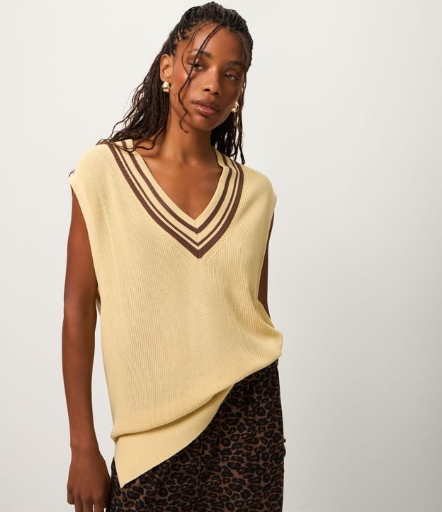 Colete Alongado em Tricô com Detalhe Contrastante Amarelo