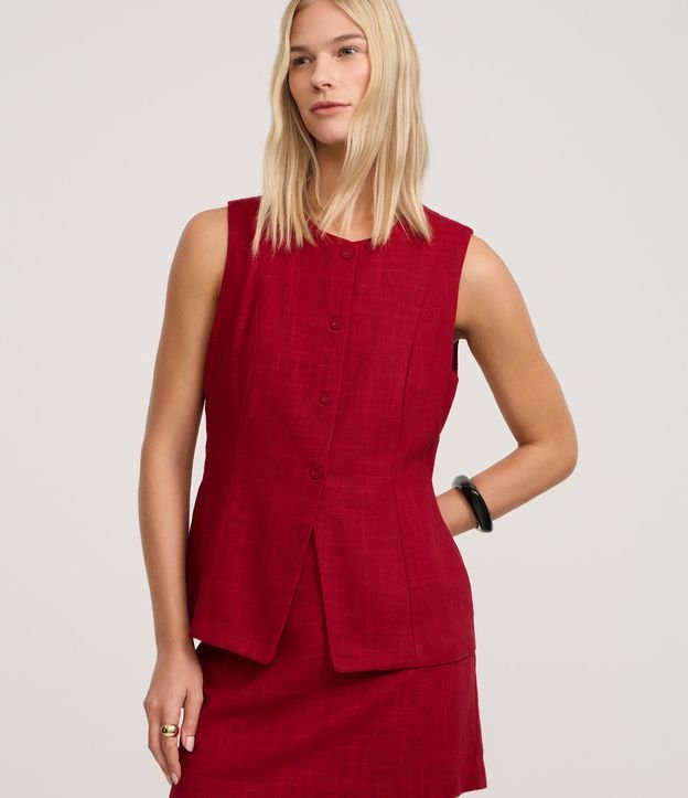 Colete com Botões Forrados e Detalhe em V na Barra Vermelho