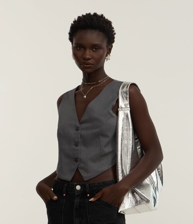 Colete Curto Alfaiatado com Estampa Risca de Giz