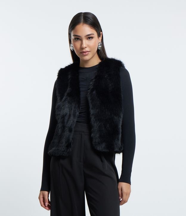Colete Curto de Pelos Artificiais e com Forro