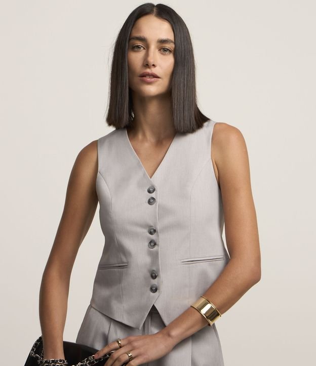 Colete em Alfaiataria com Decote V e Botões Duplos
