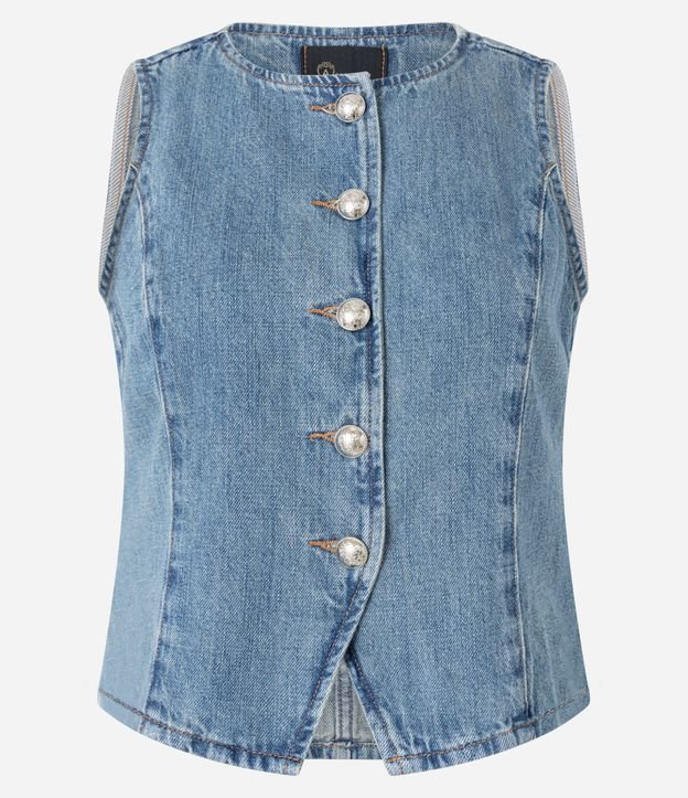 Colete em Jeans com Recortes e Botões de Brasão Médio