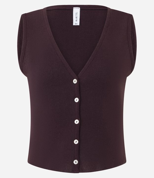 Colete em Tricô com Gola V e Abotoamento Frontal Bordô