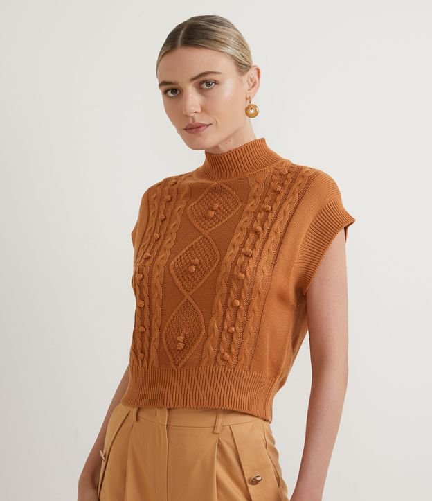 Colete em Tricô com Tranças e Bolinhas Aplicadas