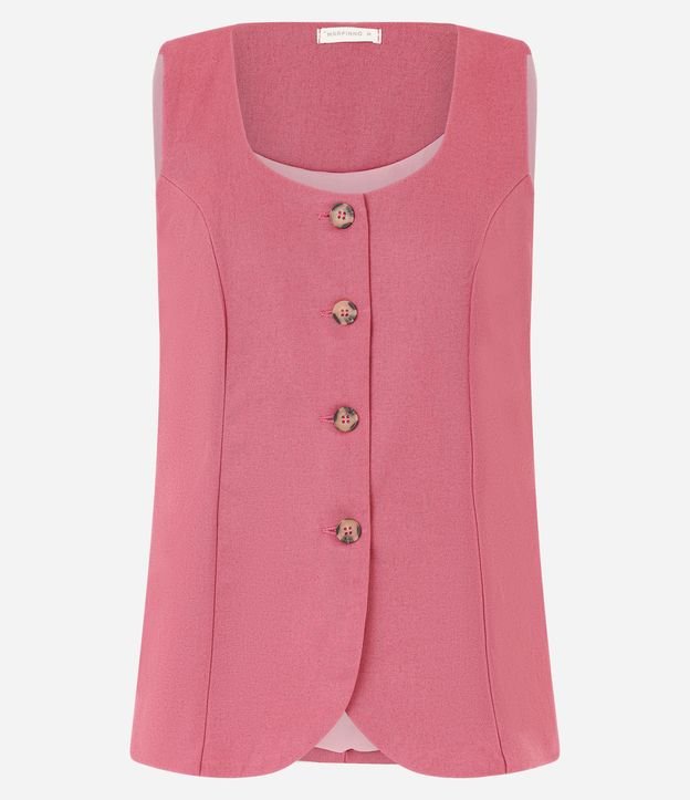 Colete em Viscolinho com Decote Quadrado e Barra Arredondada Rosa