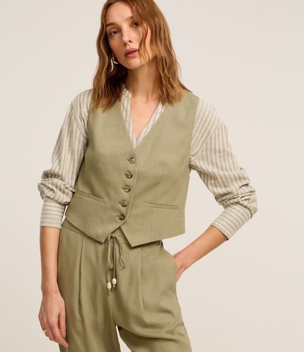 Colete em Viscolinho com Fechamento por Botões Contrastantes Verde