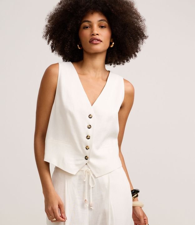 Colete em Viscolinho com Fechamento por Botões Contrastantes Branco