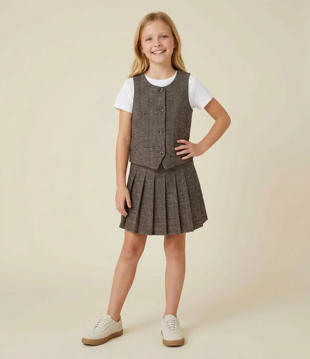 Colete Infantil Alfaiatado em Xadrez com Bolsos Fake – Tam 5 a 14 Anos Marrom