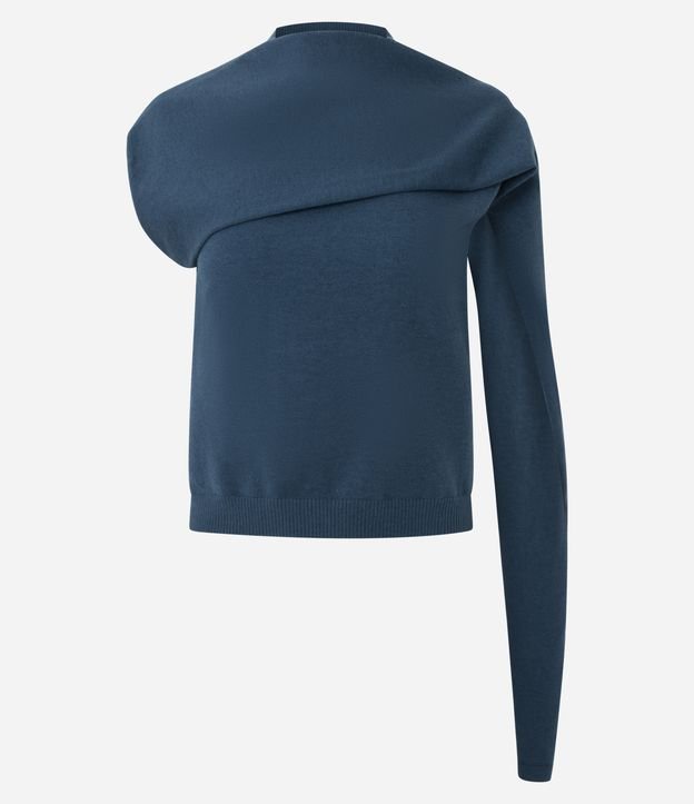 Colete feminino em tricô com modelagem regular, acompanhado de echarpe integrado que forma camada sobre o ombro.