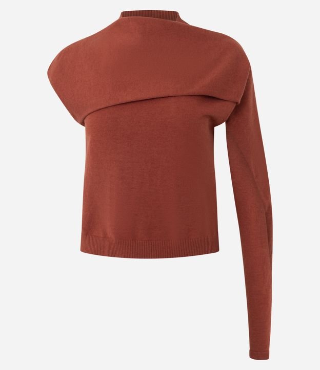 Colete feminino em tricô com modelagem regular, acompanhado de echarpe integrado que forma camada sobre o ombro.