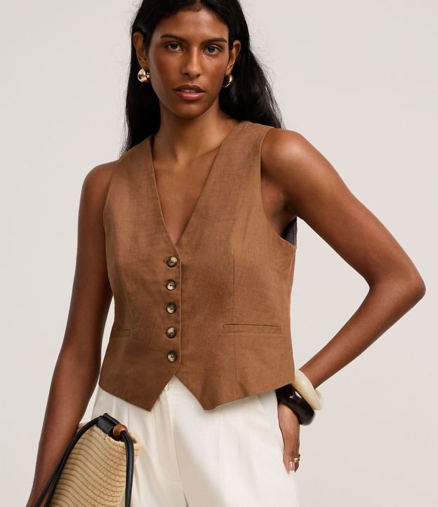 Colete Slim em Viscolinho com Botões Matizados