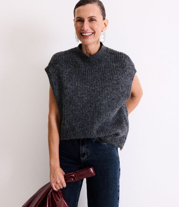 Colete Texturizado em Tricô com Caimento Leve Cinza