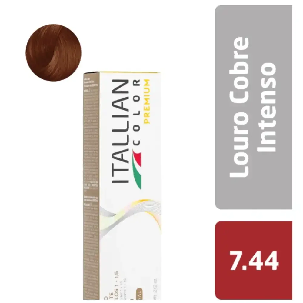 Coloração Itallian Color Premium Louro Cobre Intenso 7.44 60G