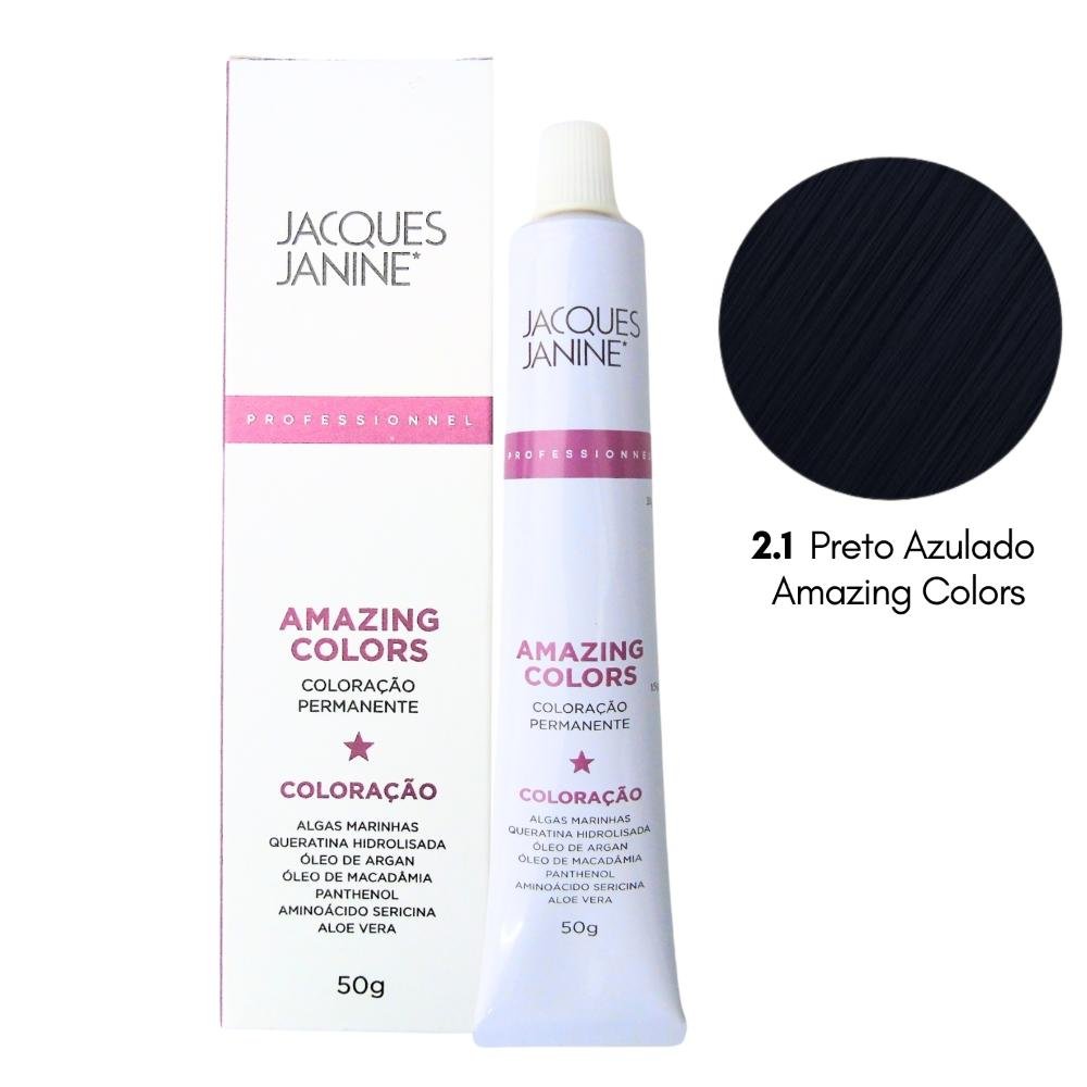 Coloração Permanente Jacques Janine 2.1 Preto Azulado Amazing Colors 50g