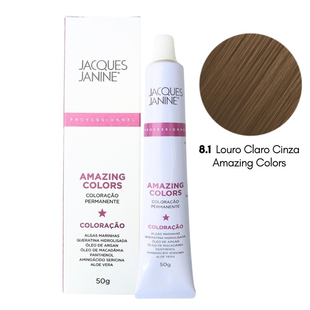 Coloração Permanente Jacques Janine 8.1 Louro Claro Cinza Amazing Colors 50g