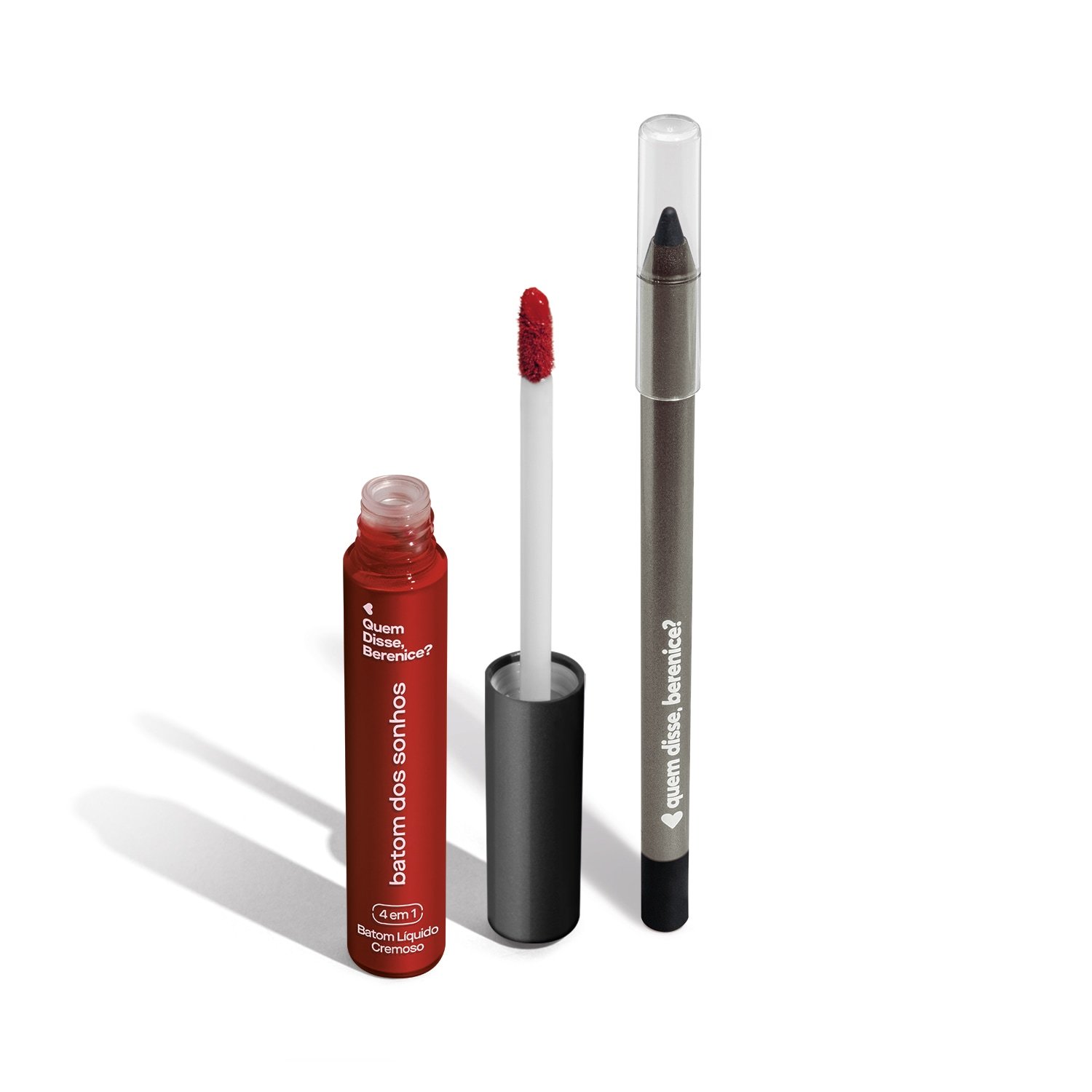 Combo Lápis Olhos Pretuco 1,2g + Batom Líquido Vermelho Positividade 5ml