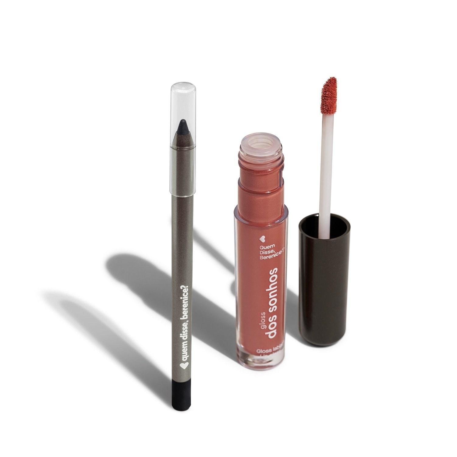 Combo Lápis Olhos Pretuco 1,2g + Gloss Labial Marrom Nude 4ml